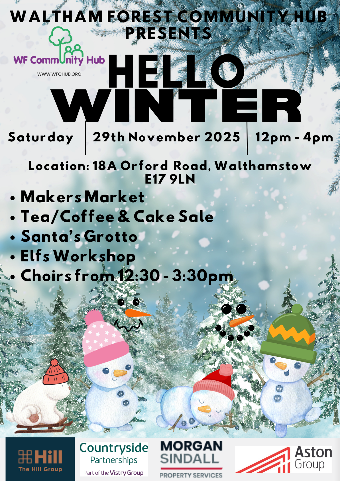 Our upcoming Hello Winter youth event, takes place on Saturday, 29th November 2025, from 12:00–4:00pm at 18a Orford Road, Walthamstow, E17 9LN.
